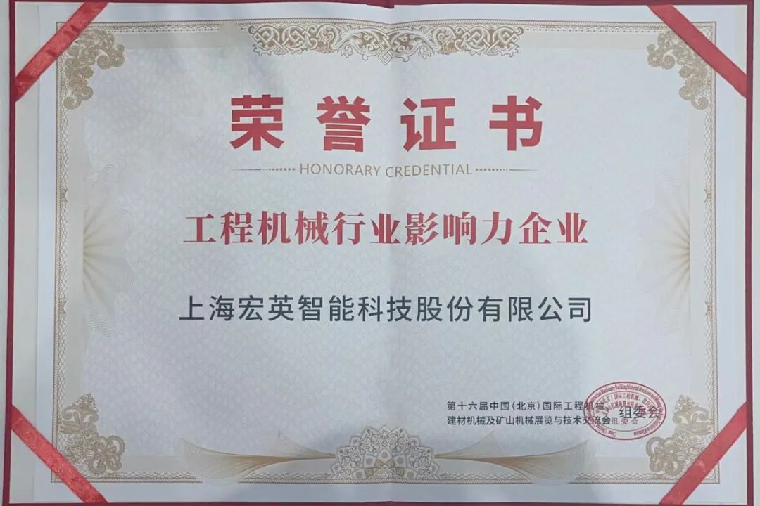 zoty中欧体育官方网站智能再获认可,被授予“工程机械行业影响力企业”荣誉证书。